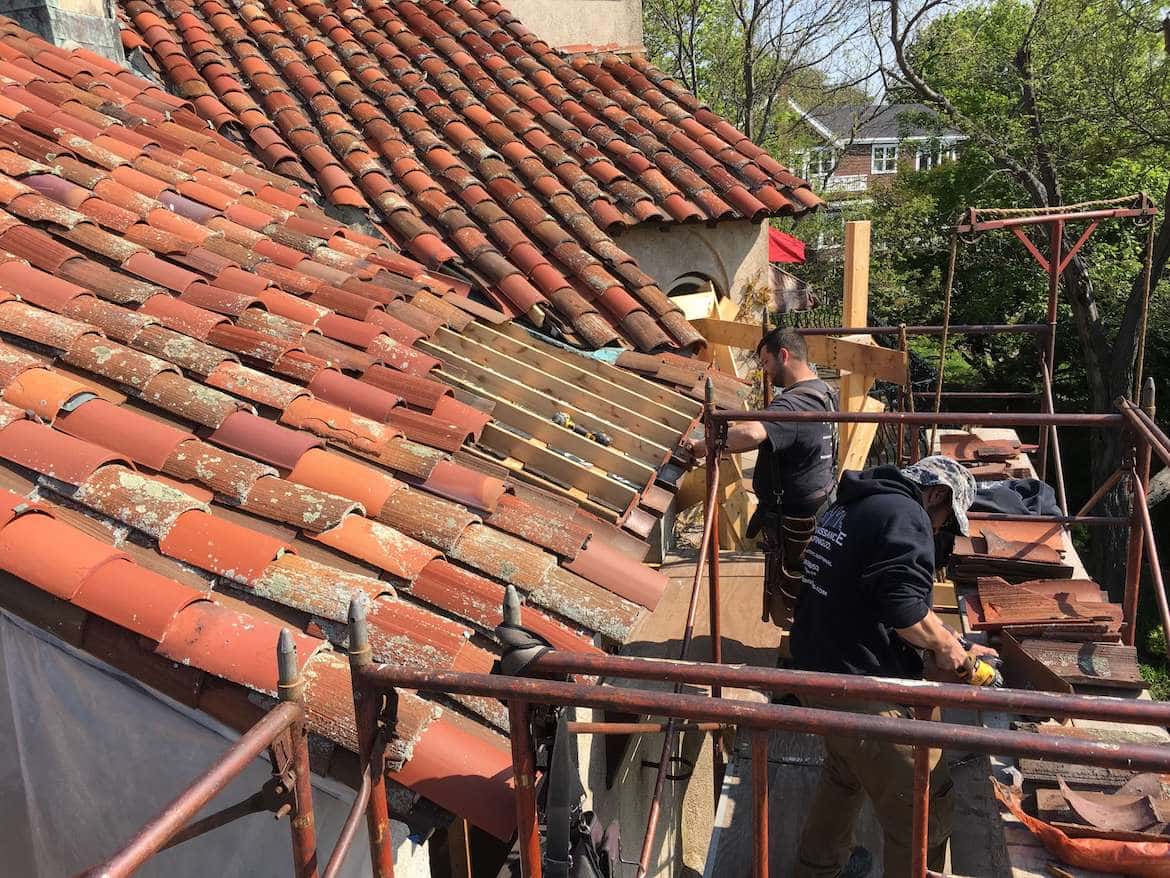 Renaissance Roofing is your Clay Tile Roof Contractor, serving RI & MA. Renaissance Roofing can help you restore your historic clay or concrete tile roof. Our team of experts can help match and locate historical tiles for your project, as well as guide you through the restoration process. We can assess your roof and make determinations as to what areas will need repairs, and what can wait. Tile roofs that are leaking are mostly due to failing flashings or, in some cases, the damage is due to incorrectly done repairs by craftsman not skilled in this type of roofing. We provide additional roofing services, such as installing new flashings, re-pointing hip caps, replacing broken tiles, gutter work and more. We are also purchasers of salvaged roof tile. Please call us so we can discuss your next roofing project.